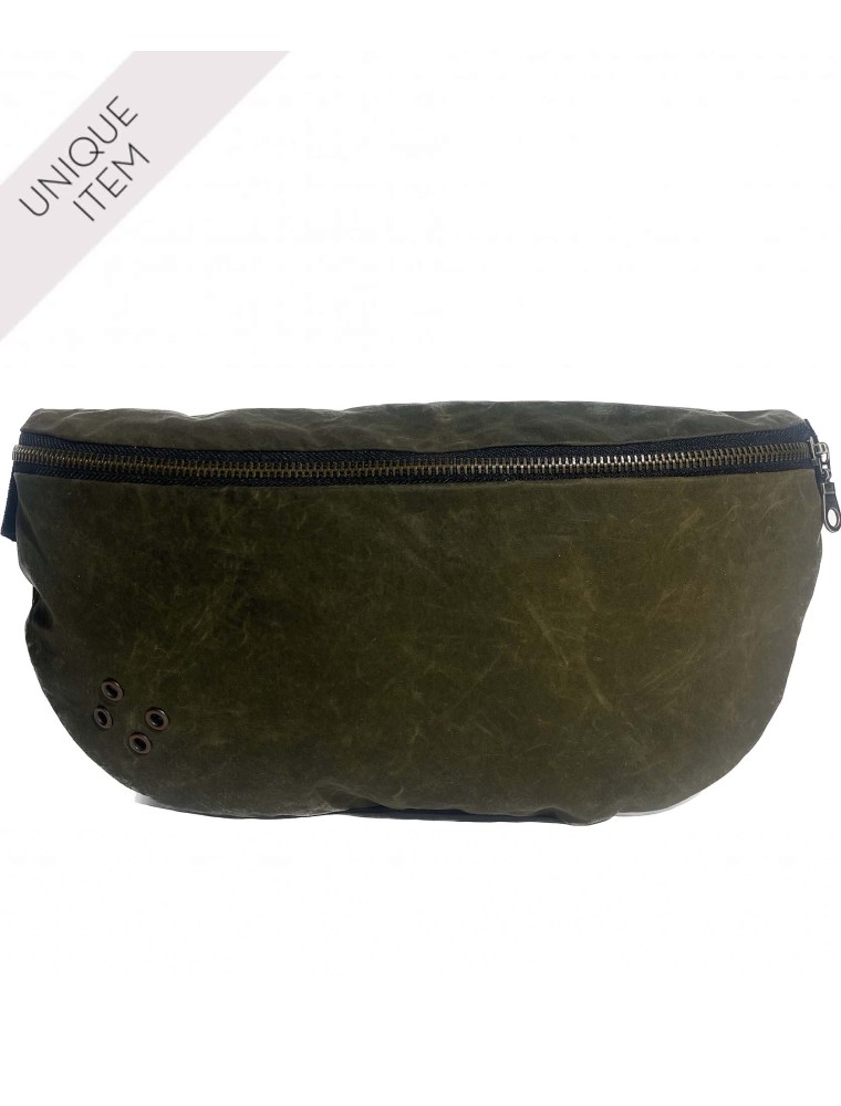 This bag was upcycled from an original old Barbour jacket. The waxed fabric is water repellent.