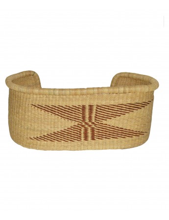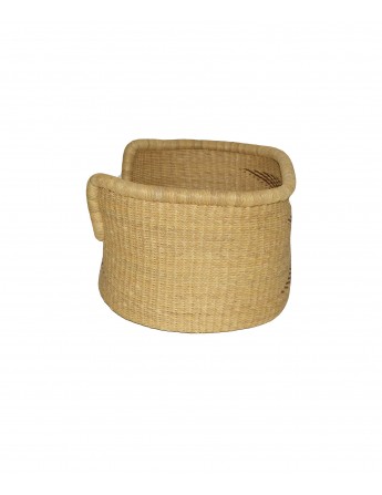Die Körbe sind aus Stroh einer Art Veta Vera-Gras gewebt. "Pennisetum Straw" oder "Pennisetum Purperium". Dies ist ein Strohhalm, der 300 - 600 km südlich von Bolgatanga im kühleren, feuchteren Süden Ghanas wild geerntet und getrocknet wird.