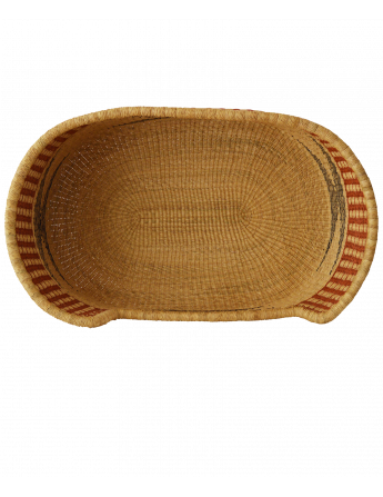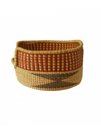 Die Körbe sind aus Stroh einer Art Veta Vera-Gras gewebt. "Pennisetum Straw" oder "Pennisetum Purperium". Dies ist ein Strohhalm, der 300 - 600 km südlich von Bolgatanga im kühleren, feuchteren Süden Ghanas wild geerntet und getrocknet wird.