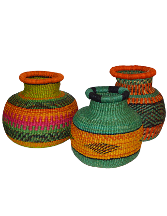 Sie werden aus 100% natürlichen Materialien hergestellt und von den Künstlern in Bolga gewebt. Diese einzigartigen afrikanischen Körbe sind in verschiedenen Farben und Größen erhältlich.