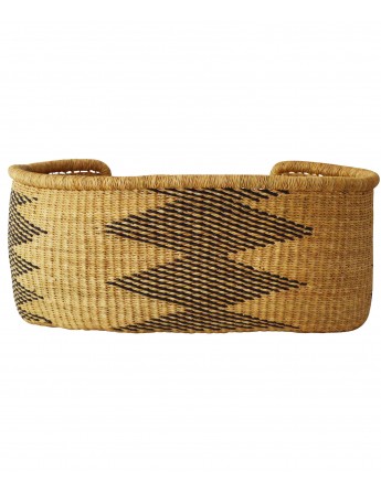 Die Körbe sind aus Stroh einer Art Veta Vera-Gras gewebt. "Pennisetum Straw" oder "Pennisetum Purperium". Dies ist ein Strohhalm, der 300 - 600 km südlich von Bolgatanga im kühleren, feuchteren Süden Ghanas wild geerntet und getrocknet wird.