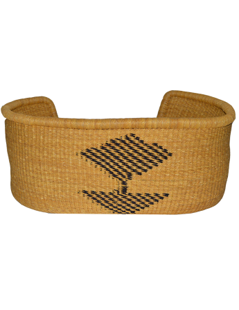 Die Körbe sind aus Stroh einer Art Veta Vera-Gras gewebt. "Pennisetum Straw" oder "Pennisetum Purperium". Dies ist ein Strohhalm, der 300 - 600 km südlich von Bolgatanga im kühleren, feuchteren Süden Ghanas wild geerntet und getrocknet wird.