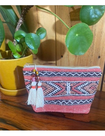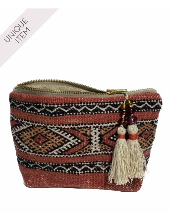 Diese kleine Kosmetiktasche ist upcycled aus einem Kelim Teppich.