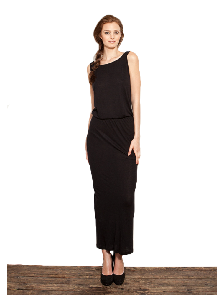 Roxi ist ein langes Maxikleid mit einem Gummizug um die Taille.