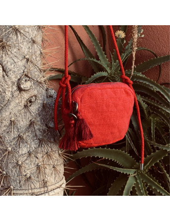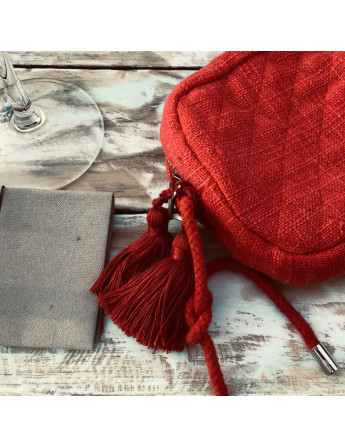 - rote Baumwolltassel mit alten Münzen Verzierung