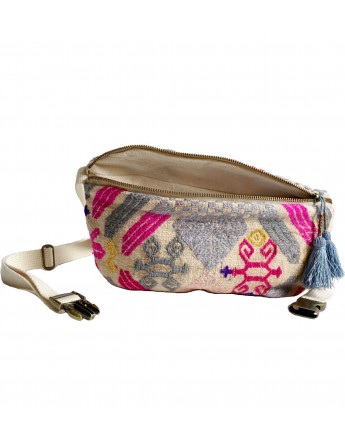 Es ist auch wichtig zu wissen, dass die Stoffe, aus denen diese Tasche hergestellt werden, Vintage-Materialien sind, die es seit vielen Jahren gibt, sodass sie leichte Mängel aufweisen können, die ihre Geschichten erzählen.