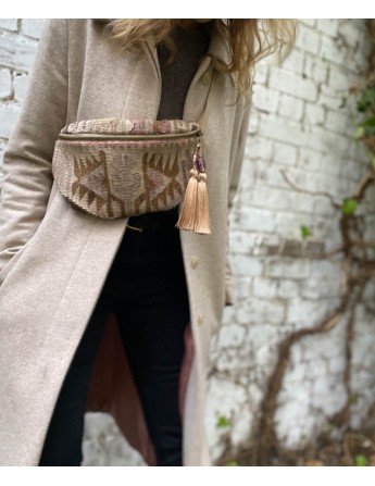 - vintage Kelim Stoff, (wahrscheinlich Wolle) ein zartes beige, rose, braun