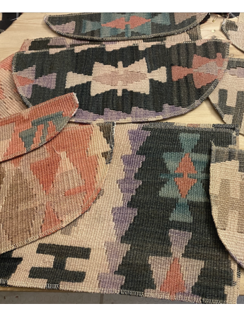 Wie alt genau dieser spezielle Kelim Stoff ist, lässt sich kaum einschätzen, höchstwahrscheinlich stammt es aber aus den 70er Jahren.