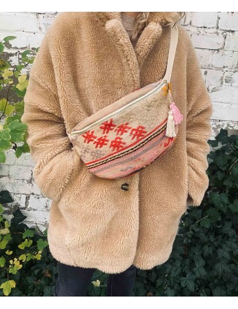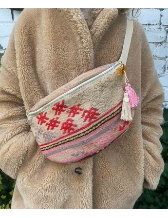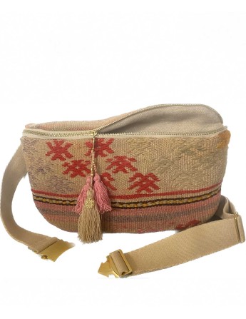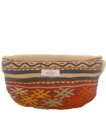 Wie alt genau dieser spezielle Kelim Stoff ist, lässt sich kaum einschätzen, höchstwahrscheinlich stammt es aber aus den 70er Jahren.