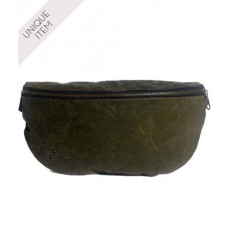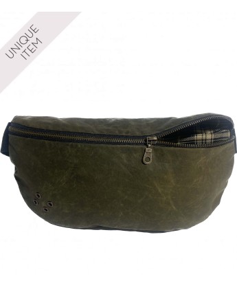 Diese Tasche wurde aus einer original alten Barbour Jacke upcycled. Der gewachste Stoff ist Wasserabweisend.
