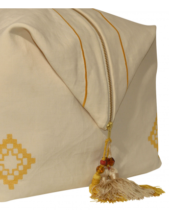 When upcycling vintage fabrics that don’t have any composition labels and washing instructions. I can only rely on my experience and expertise to identify them. Also it is important to know that the fabrics used to create this bag are vintage materials that have existed for many years. A lot of them are also embroiled by hand and not machines so they may have slight imperfections. Telling tales of their past.