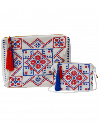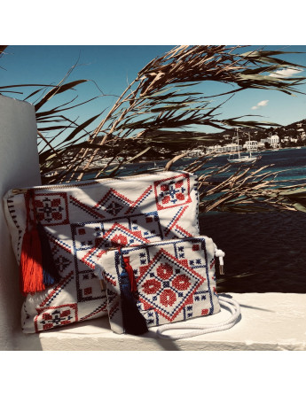 - hand embroidered- cross stich in blue and red
