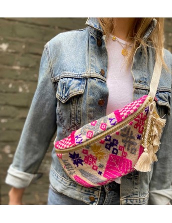 When upcycling vintage fabrics that don’t have any labels and washing instructions. I can only rely on my experience and expertise to identify them. Also it is important to know that the fabrics used to create this bag are vintage materials that have existed for many years. A lot of them are also embroidered by hand and not machines so they may have slight imperfections. Telling tales of their past.