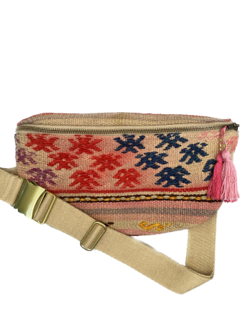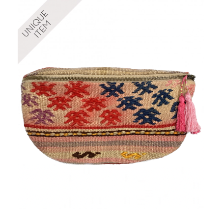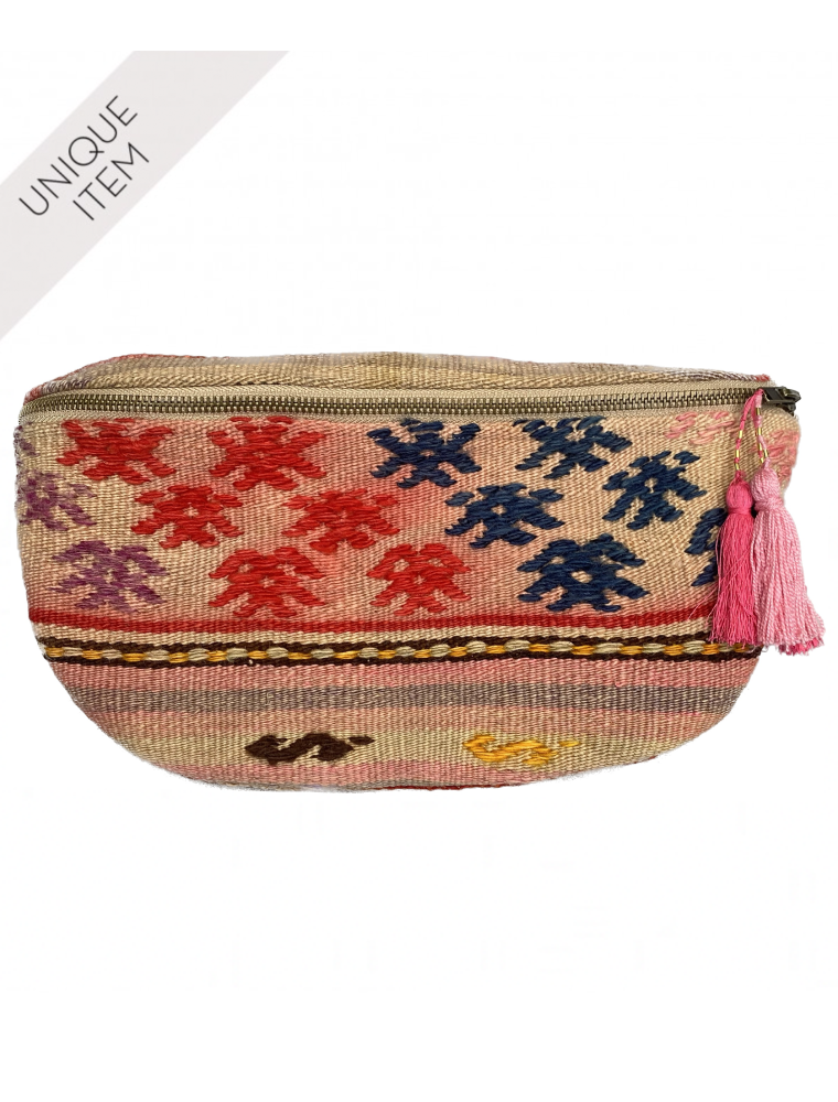 Exactly how old this special kilim fabric is can hardly be estimated, but it most likely dates from the 1970s.