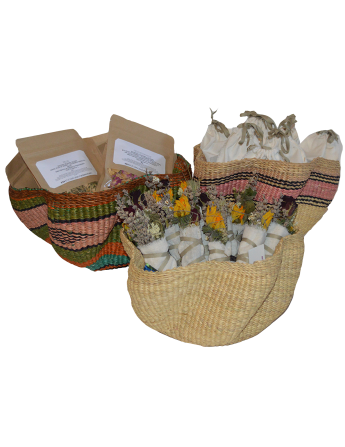 The baskets are woven from straw from a type of ‘veta vera’ grass. “Pennisetum Straw” or “Pennisetum Purperium”.