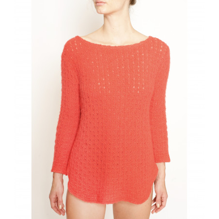 Eva is a beautiful lobster colored pullover.