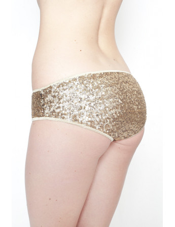 Slip Catherine is a low cut brief made out of a golden sequent fabric.